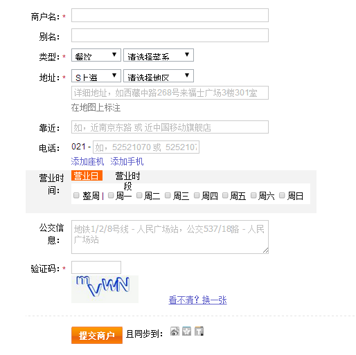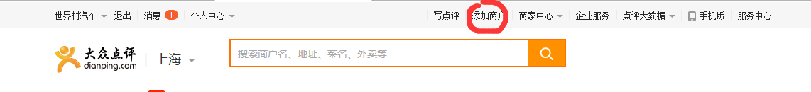 3、让页面停留在大众点评的首页,并点击右上方的“添加商户”,进入界面。 4、点击“添加商户”后会进入这样一个界面,看下图。 5、按照要求填写相关信息,提交商户信息,等待审核就可以啦。